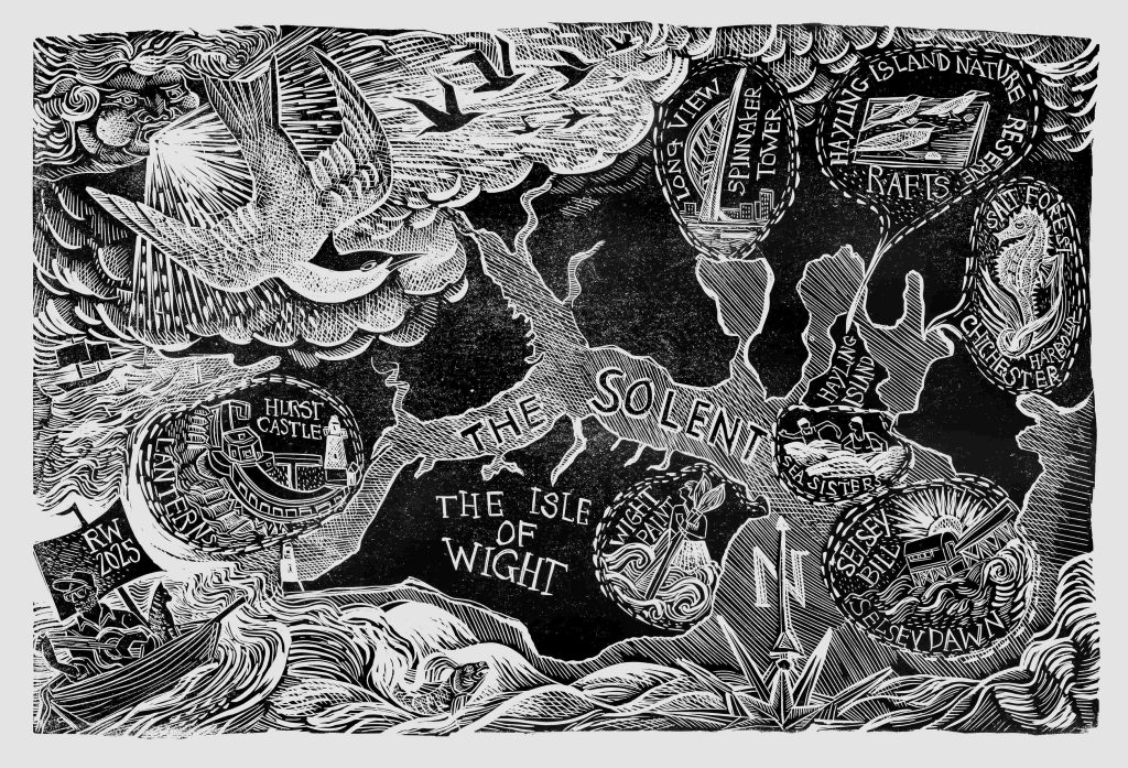 Adding a visual dimension to the release, renowned linocut artist Angela Harding has created a bespoke map of the Solent. The map highlights the locations that inspired each song and features on the Solent Seascape Project’s website, allowing listeners to connect the music directly with the places that shaped it.  Angela said,